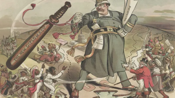 “The World’s Constable,” a cartoon depicting President Theodore Roosevelt’s expansion of the Monroe Doctrine, from PUCK Magazine, Jan. 14, 1905. (Source: Shutterstock)
